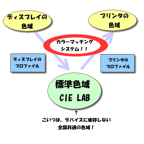 カラーマネージメントシステムは、おおよそ次のようなことをやります。