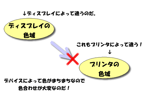 ディスプレイやプリンタがどんな色を表示できるのかを