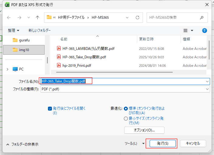 - ファイル名を入力して、[発行]ボタンをクリックします。