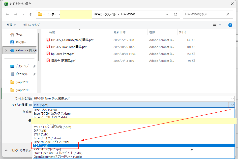 - ファイルの種類で 「PDF(*.pdf)」を選択します。
