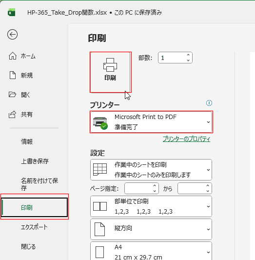 以前のバージョン同様にExcelからPDFファイルを作成することができます。