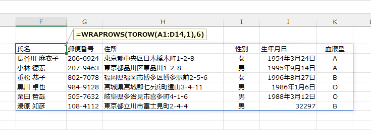 | 氏名 | 郵便番号 | 住所 | 性別 |