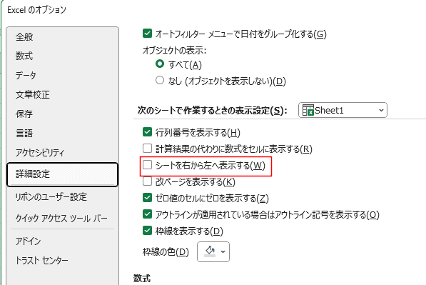 - 表示の標準の方向 で「左から右」にチェックを入れます。
