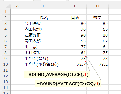 | ROUND関数で四捨五入する | ROUNDUP関数で切り上げる | ROUNDDOWN関数で切り捨てる |