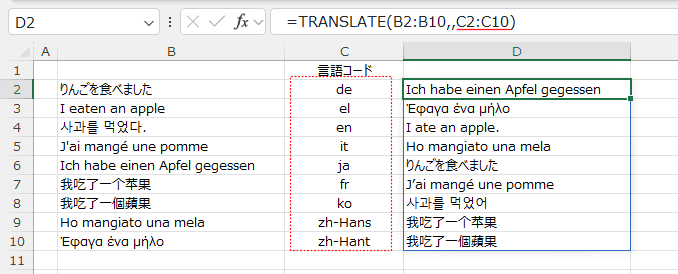 省略可 | 翻訳先の言語のコードを指定します。 省略すると自動で判別します |