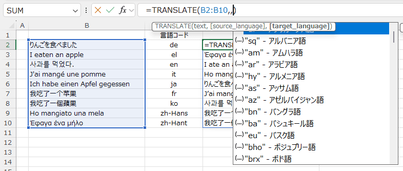 省略可 | 翻訳元の言語のコードを指定します。 省略すると自動で判別します |