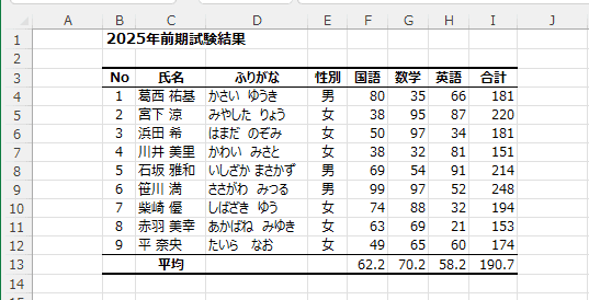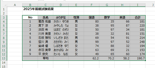- 2行目が空行となっているので、表内のセルを選択して、[Ctrl]+[A] または [Ctrl]+[Shift]+[*] で選択することができます。