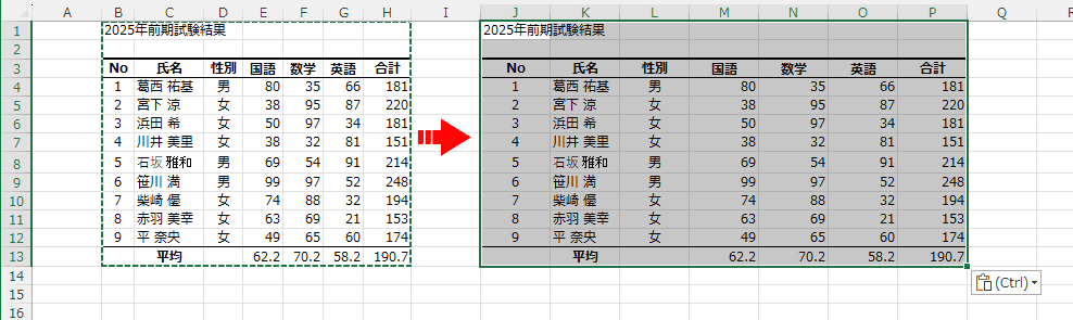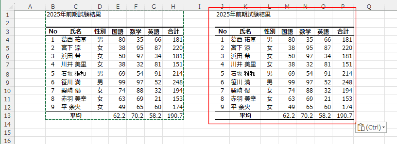 - B1:H13 をコピーして、J1セルに貼り付けました。