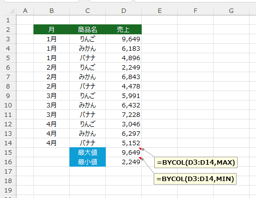 | MAXIFS、MINIFS関数を使う[Excel for Microsoft365,Excel2019以降] | GROUPBY関数を利用する[Excel for Microsoft365] | FILTER関数を利用する[Excel for Microsoft365,Excel2021以降] |