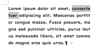 - 元の文章です。「consectetuer」が途中で次の行に分かれています。