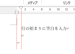 - 行頭で空白を入力すると、インデントが設定され、[Enter]キーで段落換えをしても継承されます。