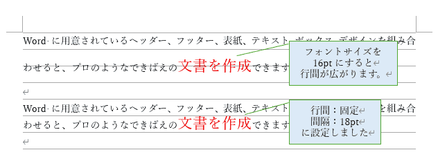 - フォントサイズを大きくすると、行間が自動的に広げられます。