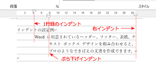 - 左インデントと右インデントがある。拡大したのが下図です