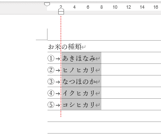 - 箇条書きにする範囲を選択します。