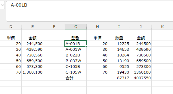 数量と単価の並び順が逆になっていますが、気にしないことにします。