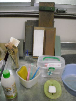 木工に水はつきものでして(どんなものでも必要かもしれませんが…)、接着作業や傷の補修、刃物の研ぎ作業に必要なものです。