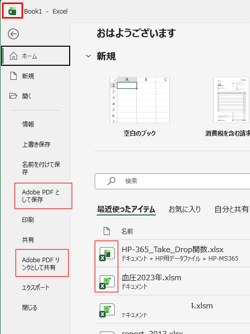 Home|Excel講座の総目次|Excel講座 Q&A(Tips)|バックステージのメニューに「Adobe PDF として保存」や「Adobe PDF リンクとして共有」が勝手に増えた