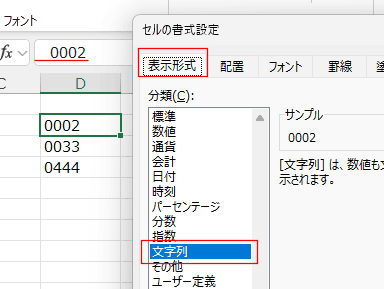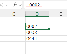 - 頭に「'」(アポストロフィ)をつけ、「'0002」のように入力します。