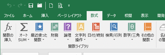 - [数式]タブなどで使用されている分類インデックス別のExcel関数の一覧表です。