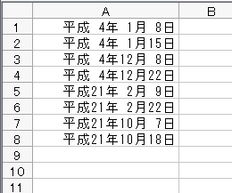 | Private Sub Worksheet_Change(ByVal Target As Range) Dim c As Range Dim fmt As String If Intersect(Target, Range("A1:A50")) Is Nothing Then Exit Sub For Each c In Intersect(Target, Range("A1:A50")) If IsDate(c.Value) Then If Len(Format(c.Value, "e")) = 1 Then fmt = "[$-411]ggg_0e年" Else fmt = "[$-411]ggge年" End If If Format(c.Value, "m") < 10 Then fmt = fmt & "_0m月" Else fmt = fmt & "m月" End If If Len(Format(c.Value, "d")) < 10 Then fmt = fmt & "_0d日" Else fmt = fmt & "d日" End If c.NumberFormatLocal = fmt & ";@" End If Next c End Sub |