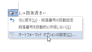 - 「1.」から入力すると下図のように「オートコレクトのオプション」が表示されます。