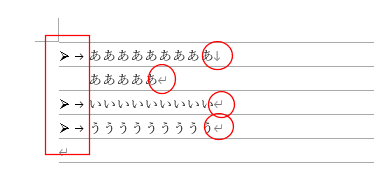 - 2行に分けたいのに、各行にマークや番号がつく?