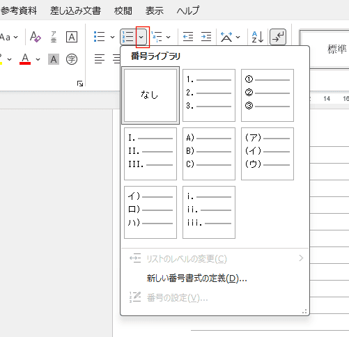 - 段落番号の設定 topへ
