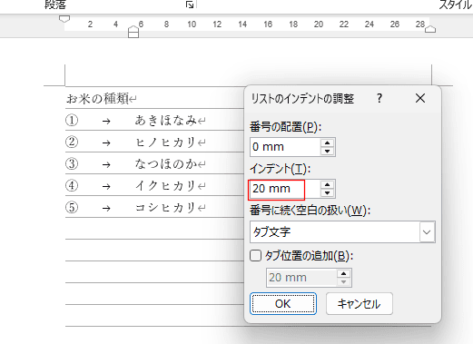 [リストのインデントの調整]を選択します。