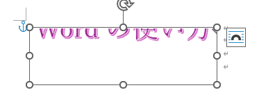 - ワードアートを選択すると、変形によりテキストボックスの外にはみ出た状態になっているのがわかります。