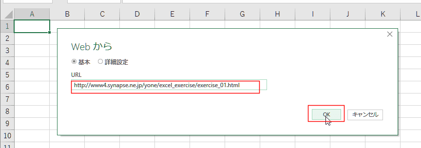 2. Webサイトのアドレス(URL)を入力して、[OK]ボタンをクリックします。