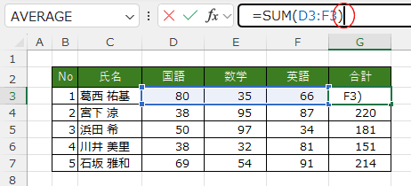 - G3セルを選択しています。