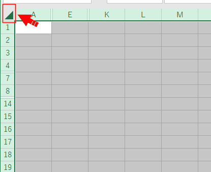 - シート全体を選択します。1行の上・A列の左の場所をクリックします。