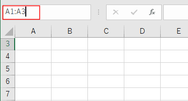 - 行の場合も同様に名前ボックスに A1:A3 と入力します。