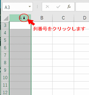 A列全体を選択します。(列番号Aをクリックします)