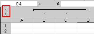 - レベルリストが表示されます。左の『1』または『-』ボタンをクリックするとB,C列が非表示になります。