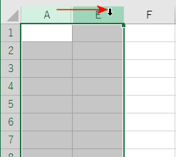 下の図ではB〜D列が非表示になっているので、非表示の列を含むようにA〜E列を選択します。