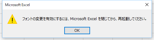 [OK]をクリックして、Excelを再起動すると設定が反映されます。