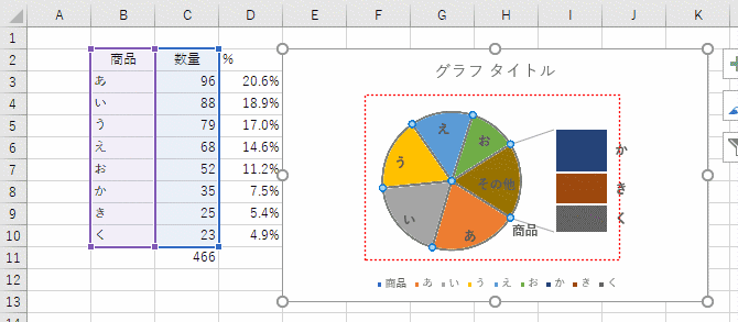 | 異なる列の2つのリスト(表)から補助縦棒付き円グラフを作成する | |