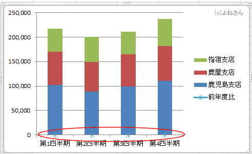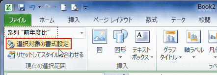 系列「前年度比」はグラフでは非常に小さいのでクリックして選択できないので、リボンから操作します。