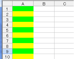 | Sub rei20_4_2() Dim c As Range Dim myCol As Integer For Each c In Range("A1:A10") If c.Row Mod 2 = 1 Then myCol = 4 Else myCol = 6 End If c.Interior.ColorIndex = myCol Next c End Sub |