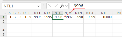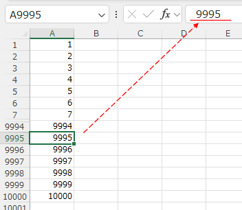 A9995セルには数値の9995が入力されているのがわかります。