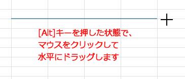 [Alt]キーを使って描画します。すると、セルの枠線に沿って直線を描画することができます。