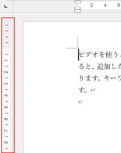 - 表示モードが[印刷レイアウト]では『垂直ルーラー』が表示されますが、それ以外では表示されません。