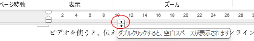 - 上下の余白が表示されない場合は、余白部分にマウスを重ねると、『空白スペースを表示する』と表示されるので、クリックすると、余白が表示されます。