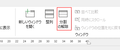 [表示]タブのウィンドウ グループにある [分割の解除]をクリックします。