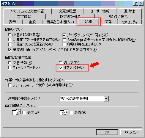 - [ツール]→[オプション]の[印刷]タブを選択します。