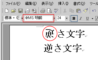 - フォントボックスでフォント名の前に「@」を入力します。
