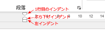 - 左インデントと右インデントがある。拡大したのが下図です