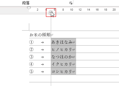 - 段落番号をつける段落を選択します。