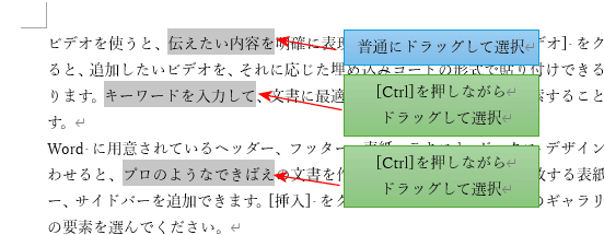 - 2箇所目以降は[Ctrl]キーを押しながらドラッグして選択します。